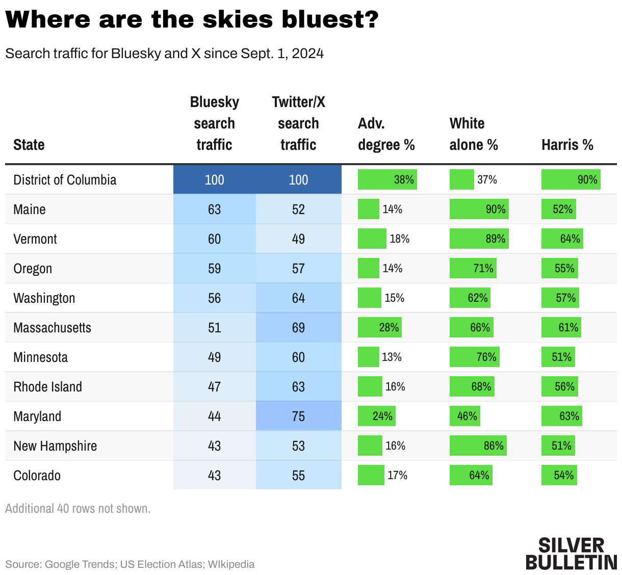 Search traffic for Bluesky and X since Sept. 1, 2024