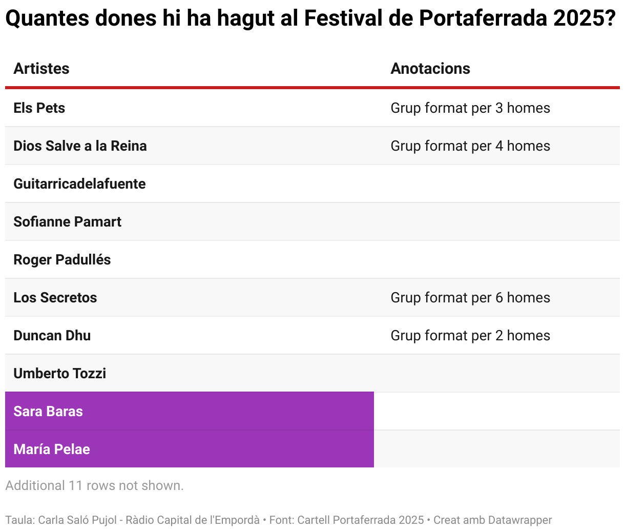 Quantes dones hi ha hagut al Festival de Portaferrada 2025?