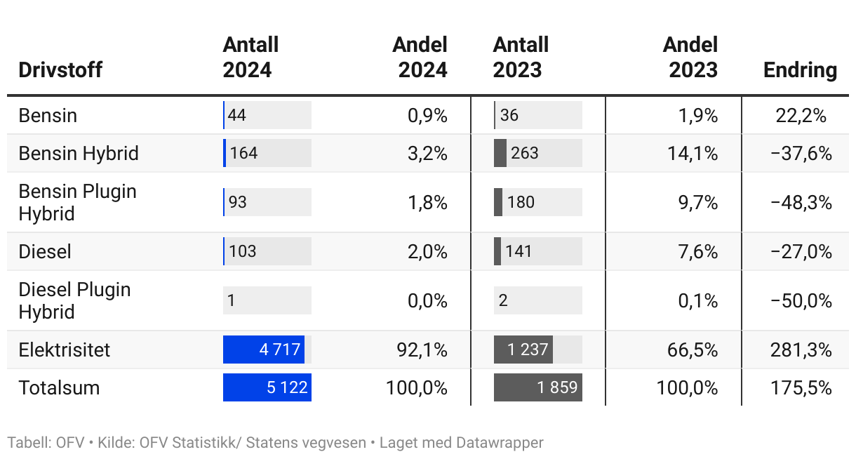 Grafikk: OFVKilde: OFV Statistikk/ Statens vegvesenLast ned dataLast ned bildeLaget med Datawrapper