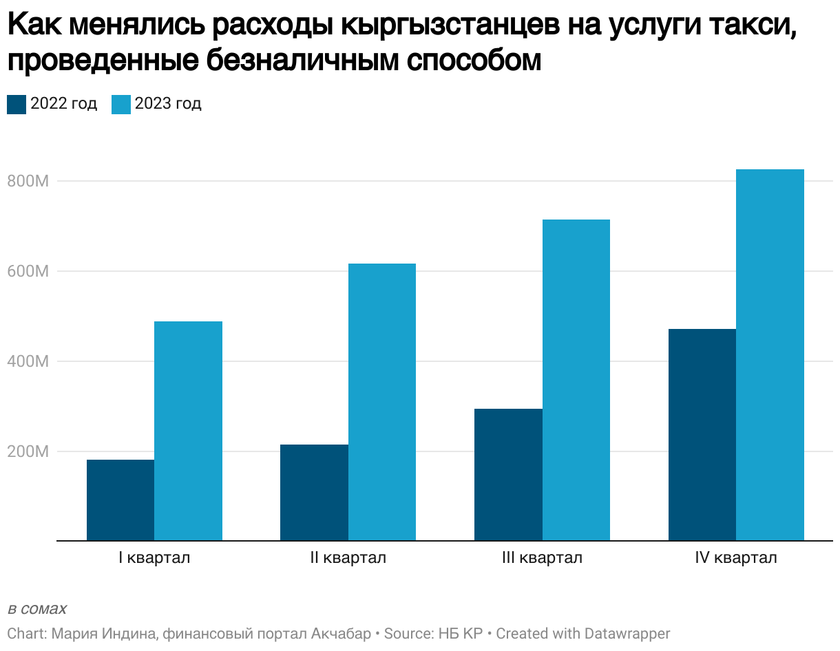 Как менялись расходы кыргызстанцев на услуги такси, проведенные безналичным способом