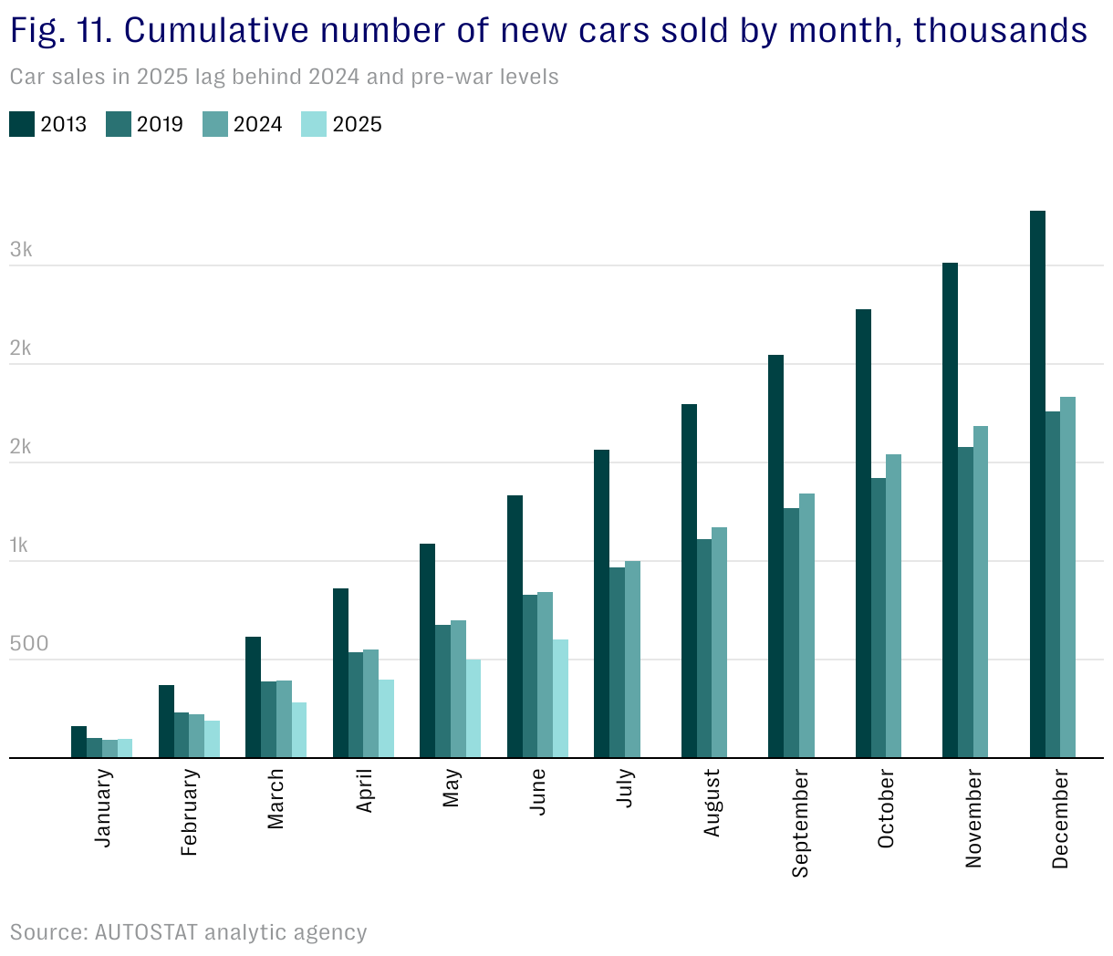 Car sales in 2025 lag behind 2024 and pre-war levels