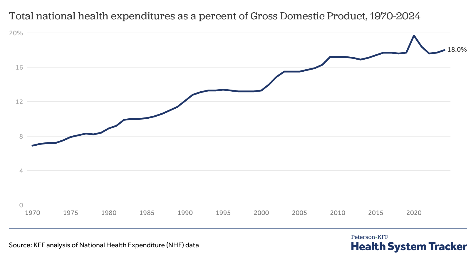 Total national health expenditures as a percent of Gross Domestic Product, 1970-2024
