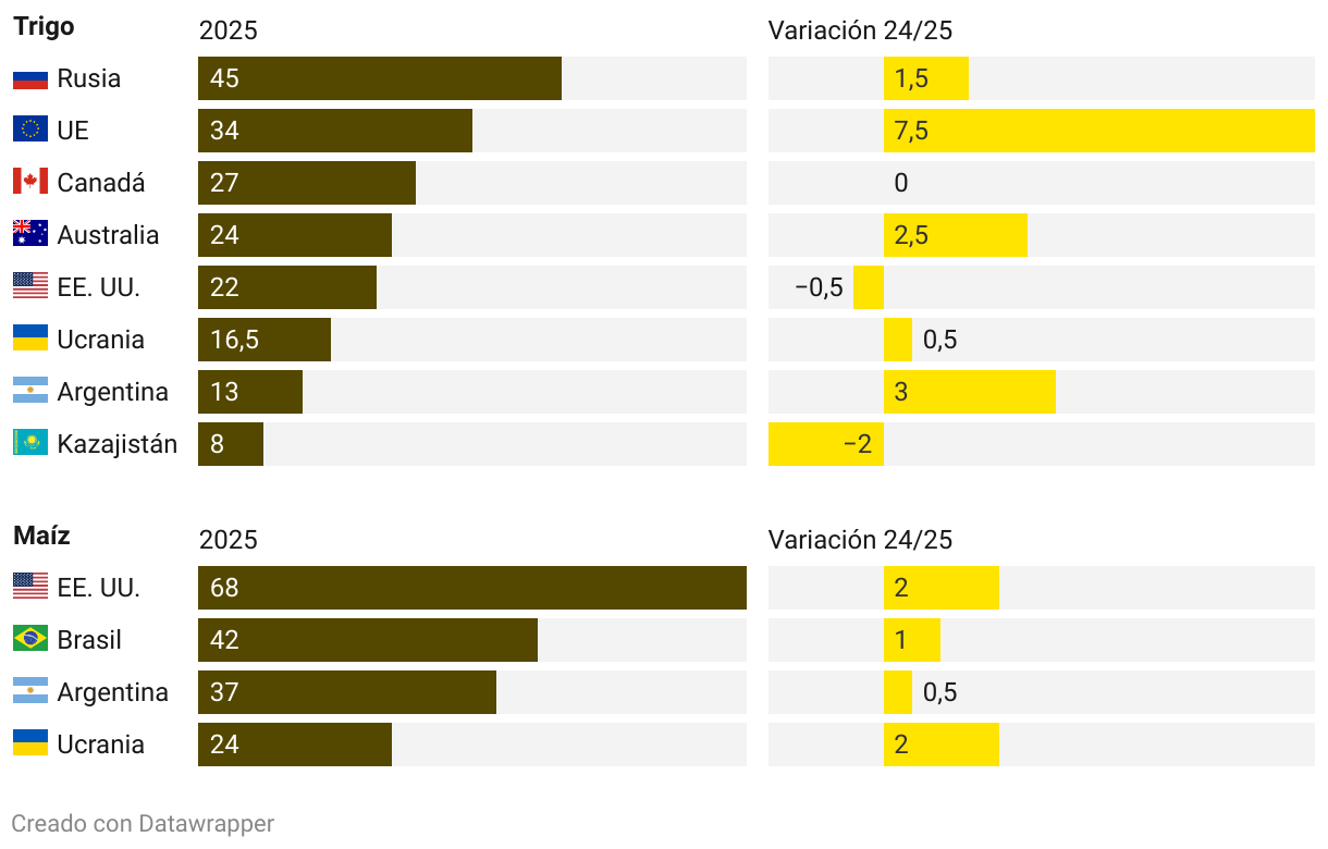 Proyección de las ventas de los principales países exportadores de cereal
