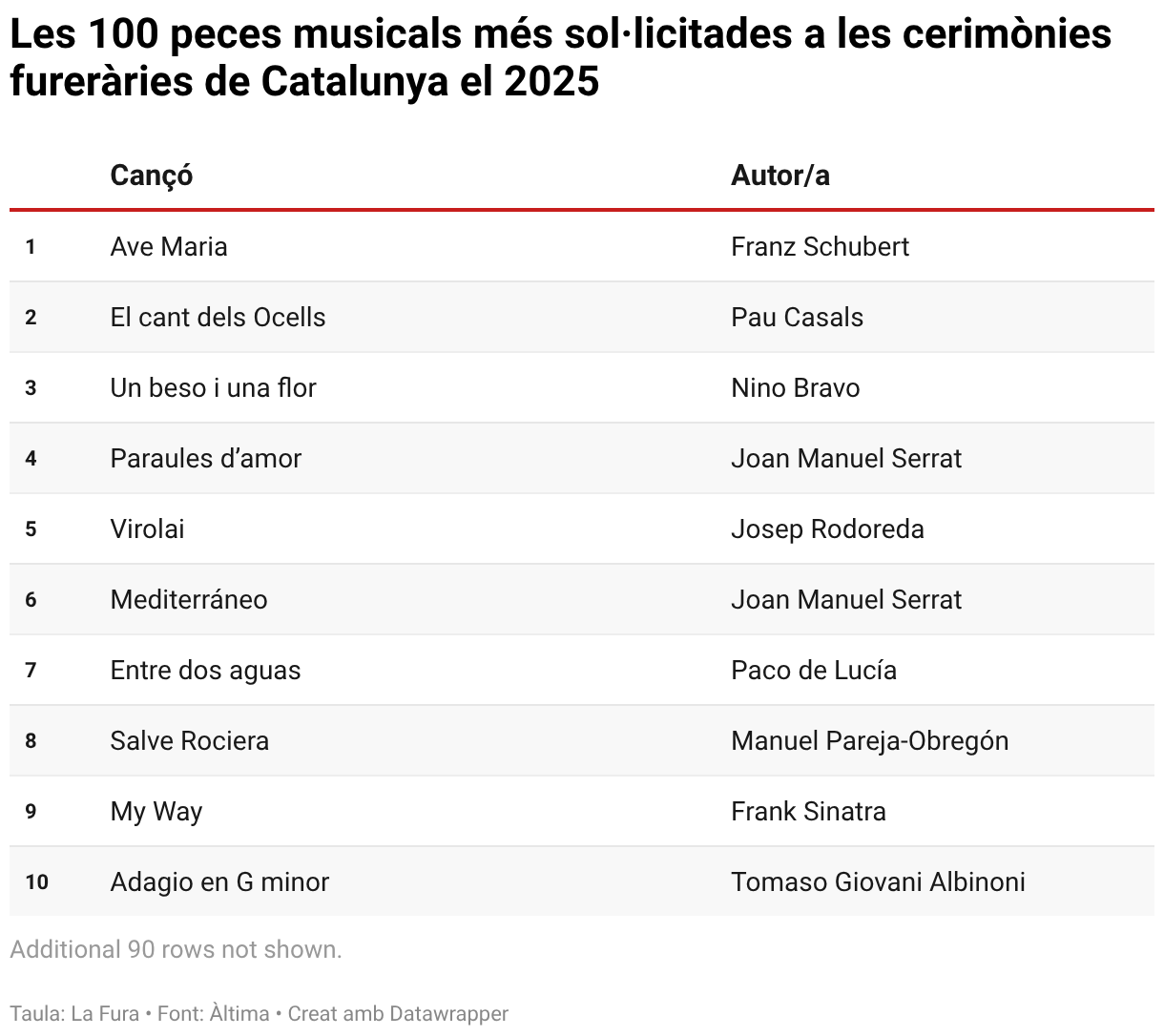 Les 100 peces musicals més sol·licitades a les cerimònies fureràries de Catalunya el 2025