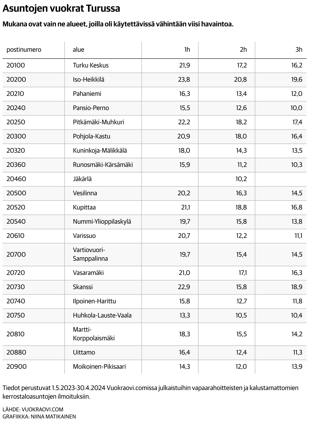 Mukana ovat vain ne alueet, joilla oli käytettävissä vähintään viisi havaintoa.