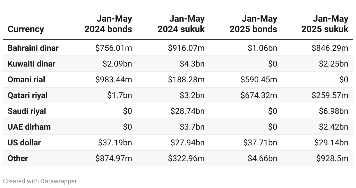 Debt issuance by curency