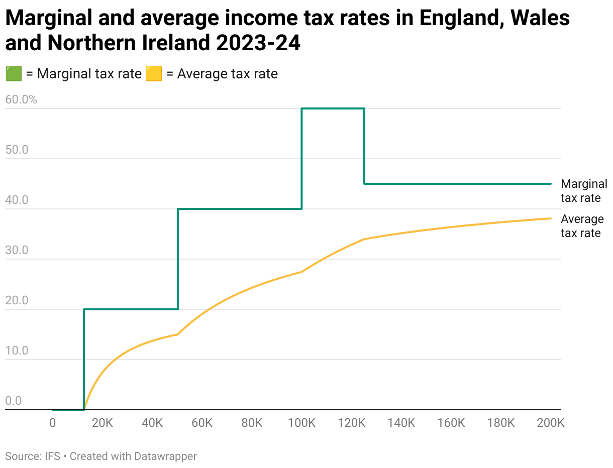 🟩 = Marginal tax rate 🟨 = Average tax rate