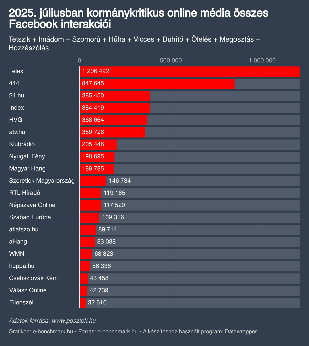 2025. júliusban kormánykritikus online média összes Facebook interakciói