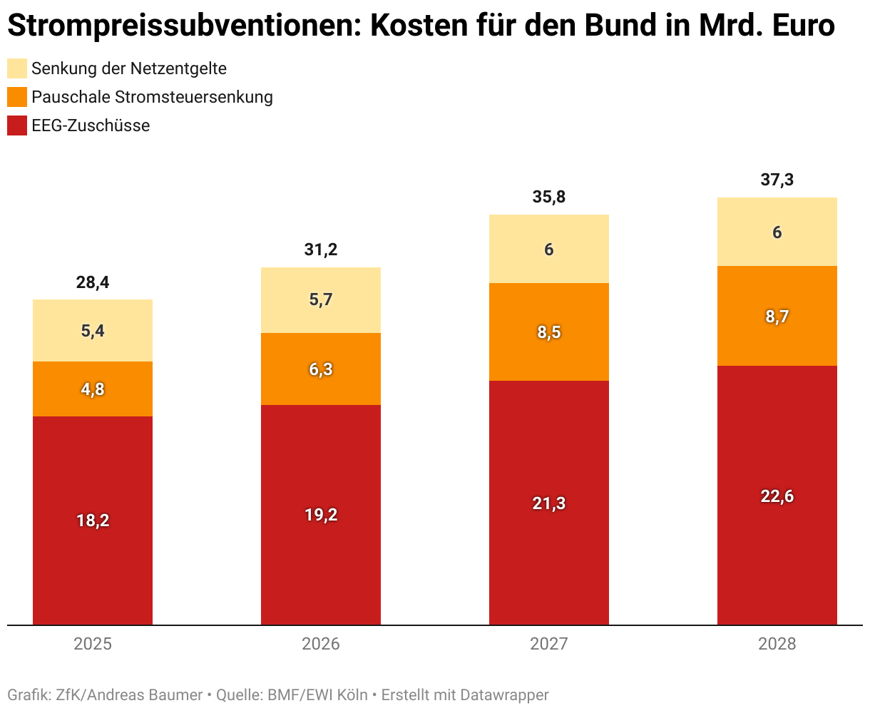 Strompreissubventionen: Kosten für den Bund in Mrd. Euro