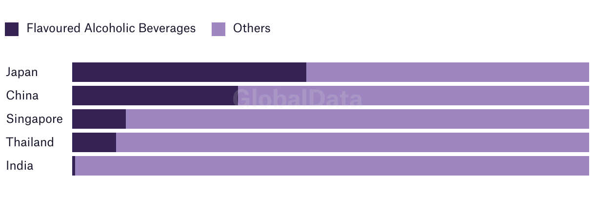 Market share of flavoured alcoholic beverages vs other spirits in the top Asian markets (million litres) - 2022
