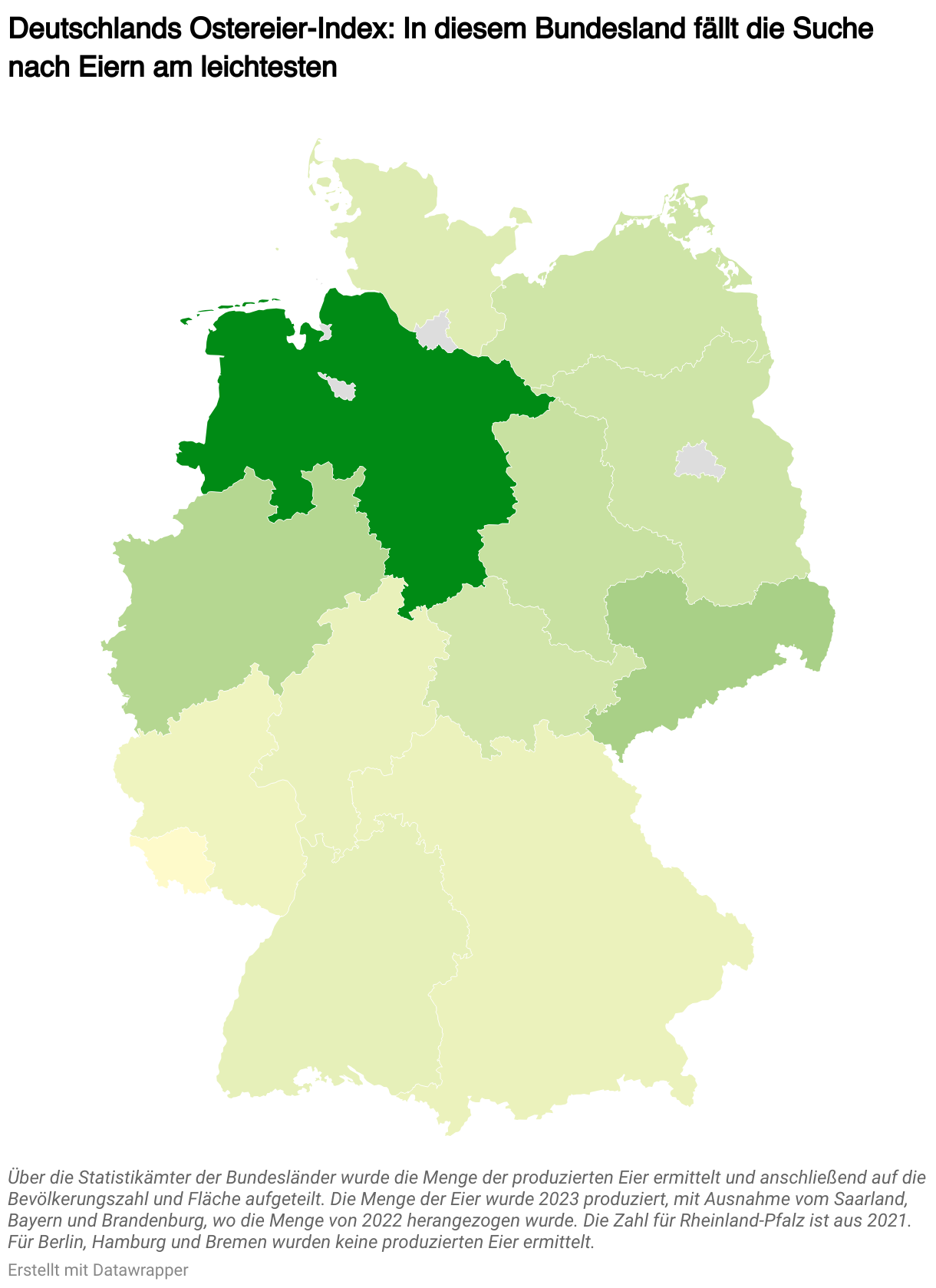 Deutschlands Ostereier-Index: In diesem Bundesland fällt die Suche nach Eiern am leichtesten