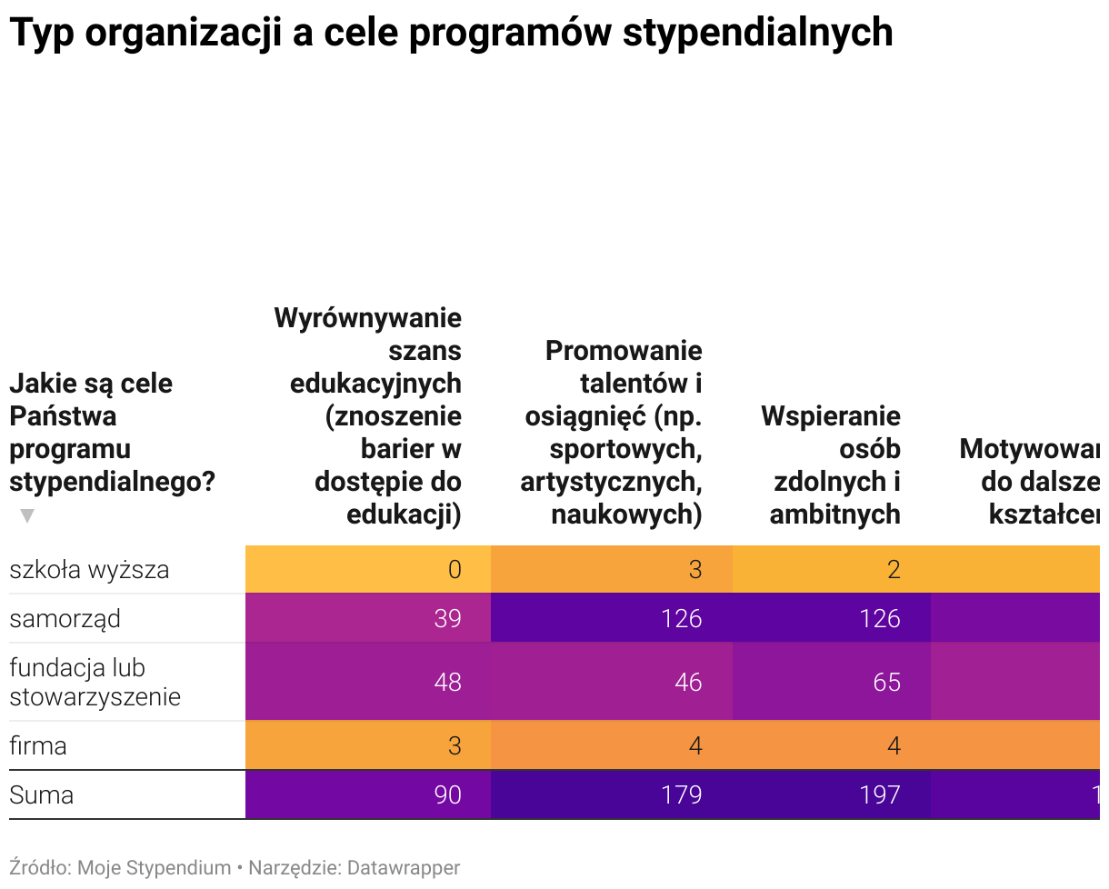 Typ organizacji a cele programów stypendialnych