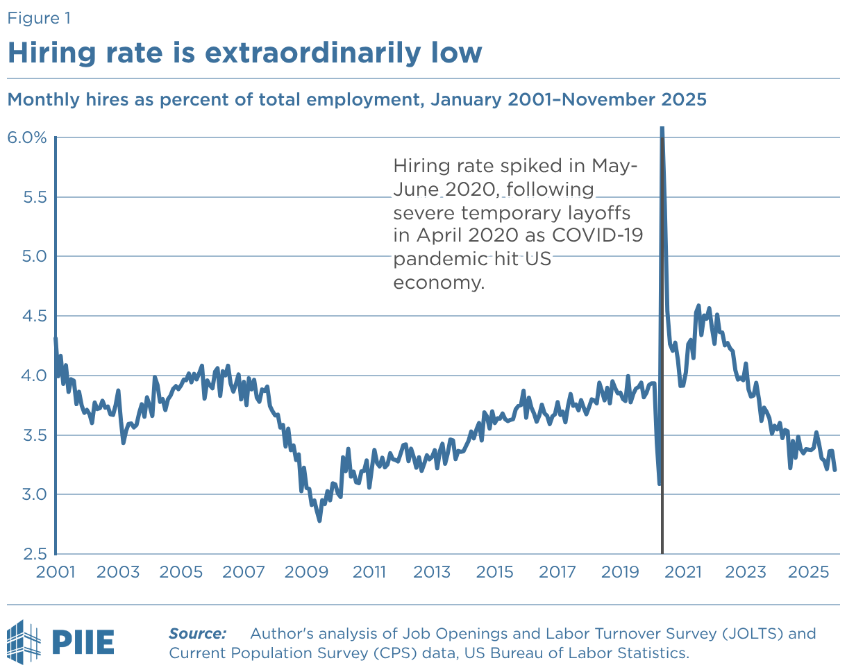 Monthly hires as percent of total employment, January 2001–November 2025