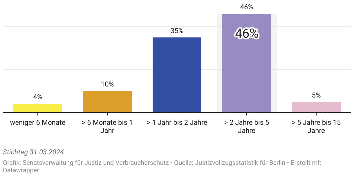 Grafik: Senatsverwaltung für Justiz und VerbraucherschutzQuelle: Justizvollzugsstatistik für BerlinGrafik herunterladenErstellt mit Datawrapper
