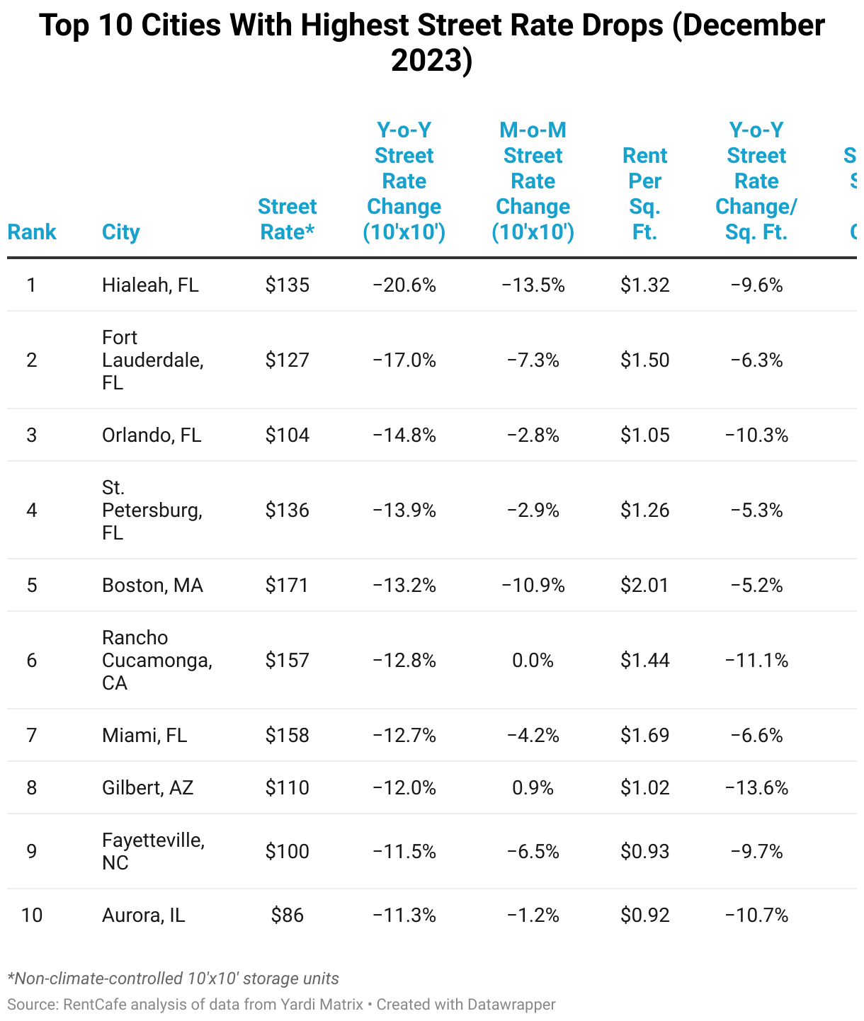 Top 10 Cities With Highest Street Rate Drops (December 2023)
