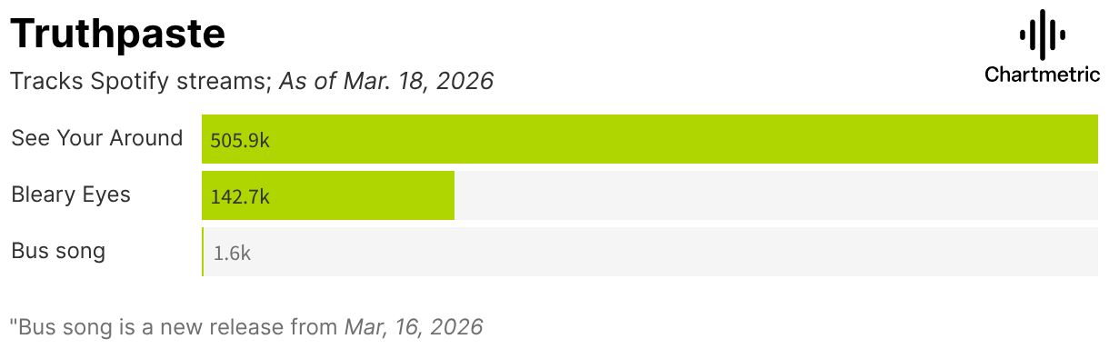Tracks Spotify streams; As of Mar. 18, 2026