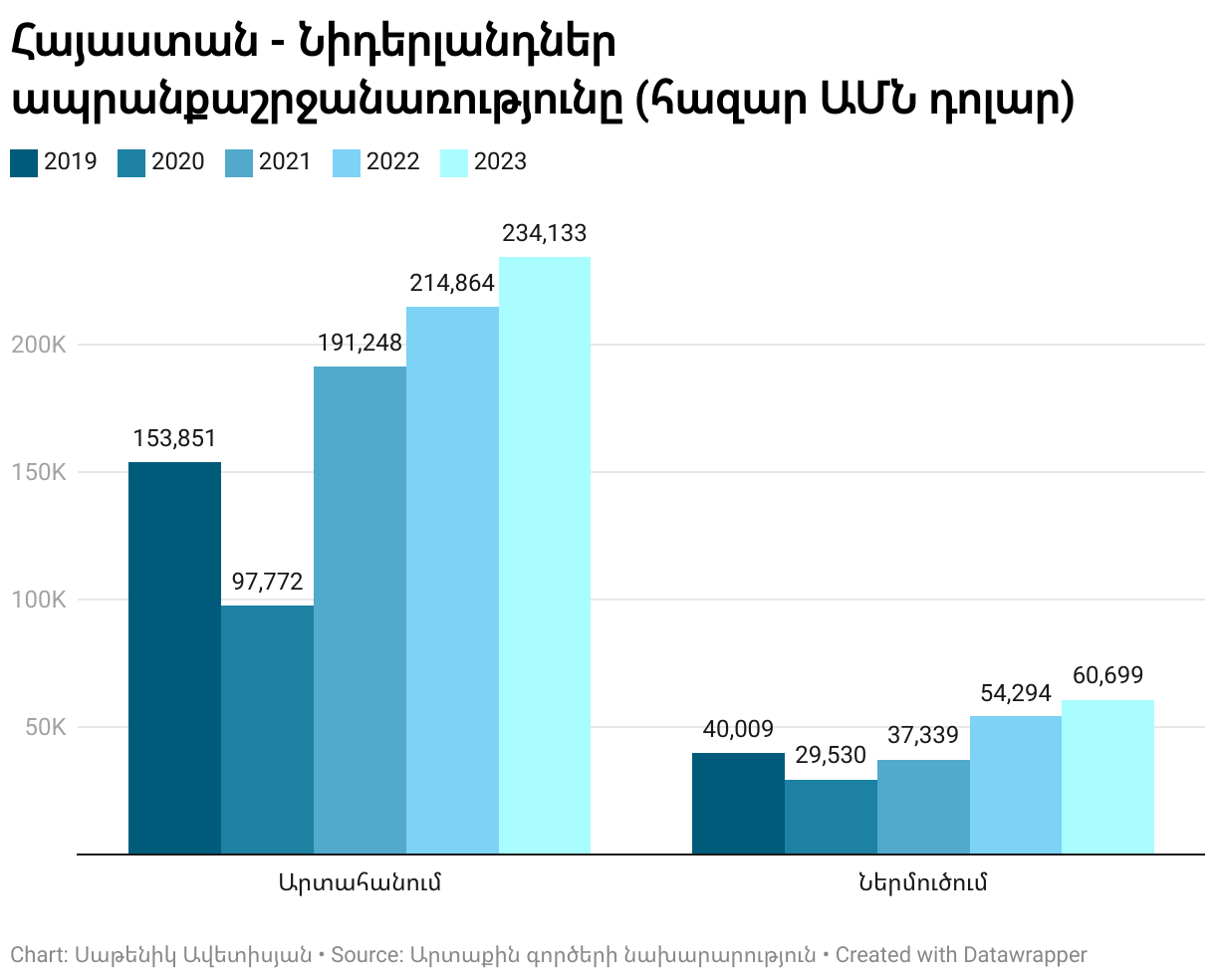 Հայաստան-Նիդերլանդներ առևտրաշրջանառությունը ավելացել է
