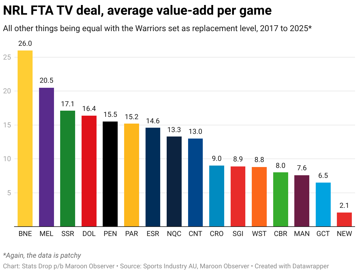 All other things being equal with the Warriors set as replacement level, 2017 to 2025*