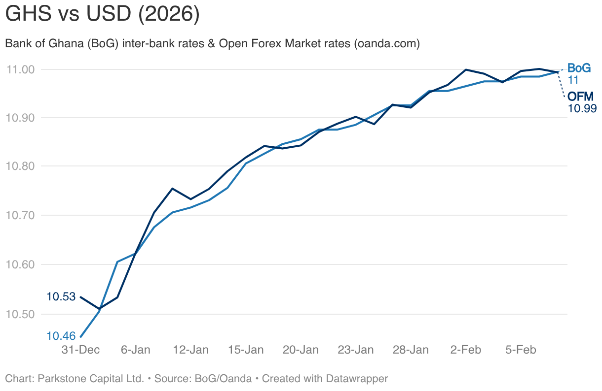 Bank of Ghana (BoG) inter-bank rates & Open Forex Market rates (oanda.com)