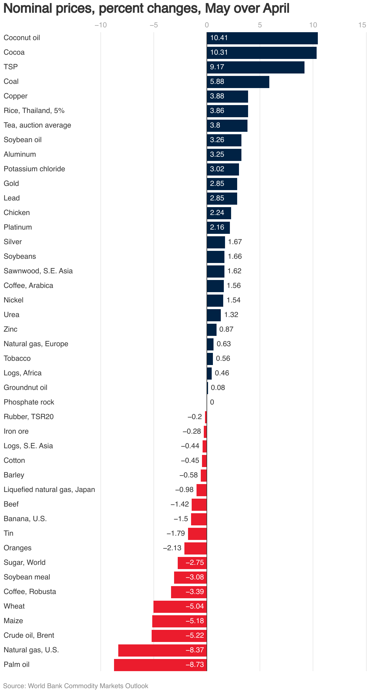 Nominal prices, percent changes, May over April