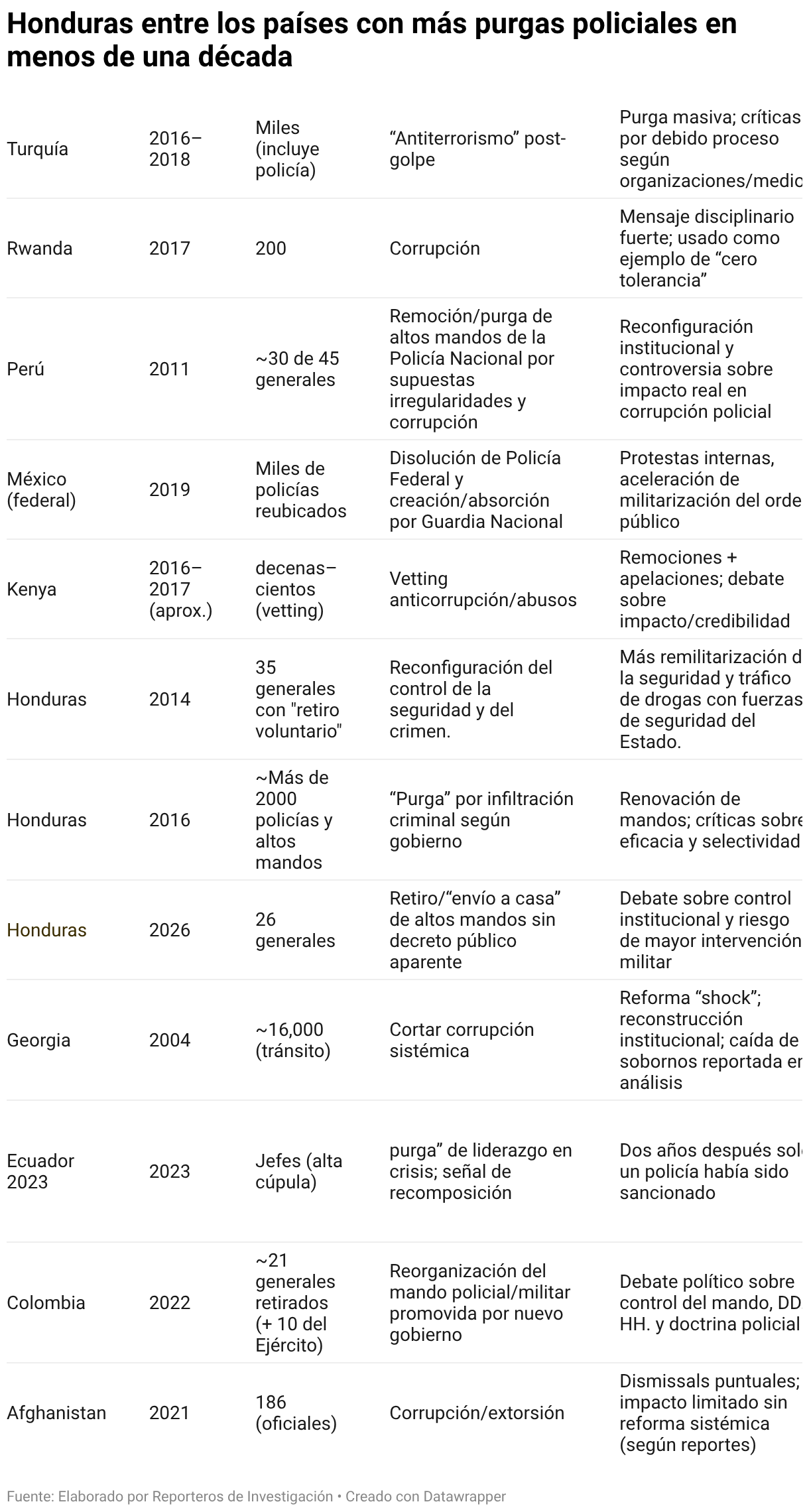 Honduras entre los países con más purgas policiales en menos de una década