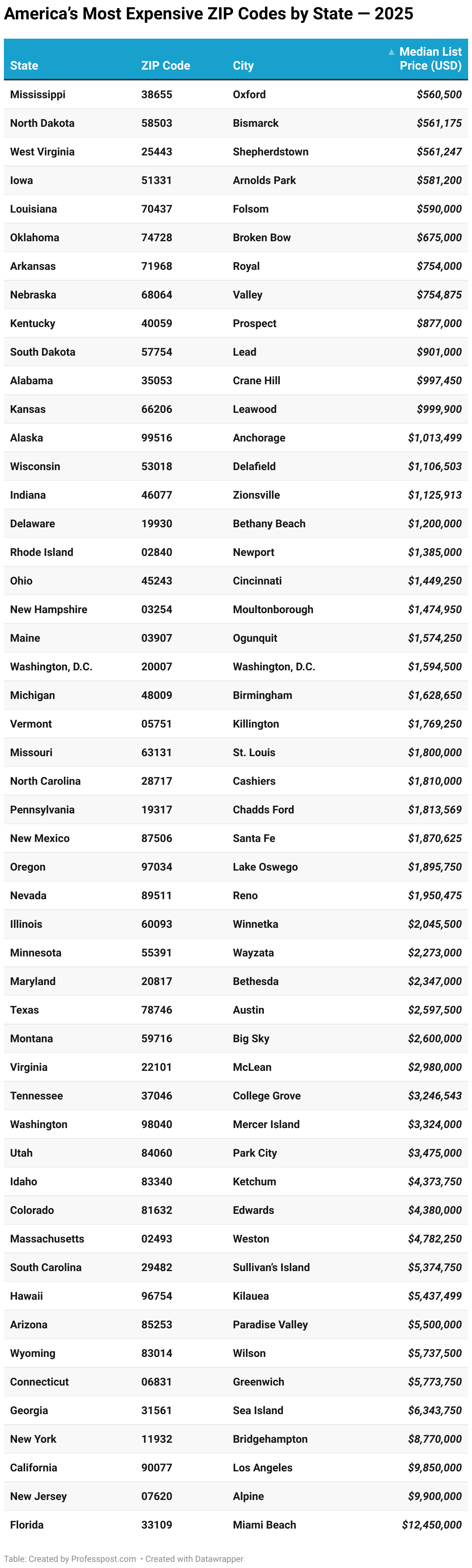 America’s Most Expensive ZIP Codes by State — 2025