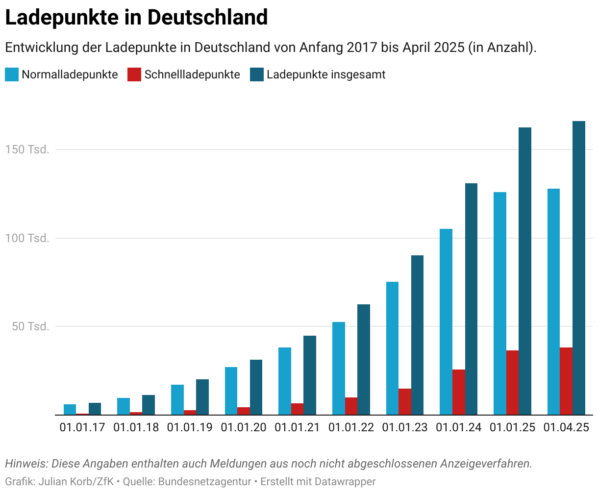 Entwicklung der Ladepunkte in Deutschland von Anfang 2017 bis April 2025 (in Anzahl).