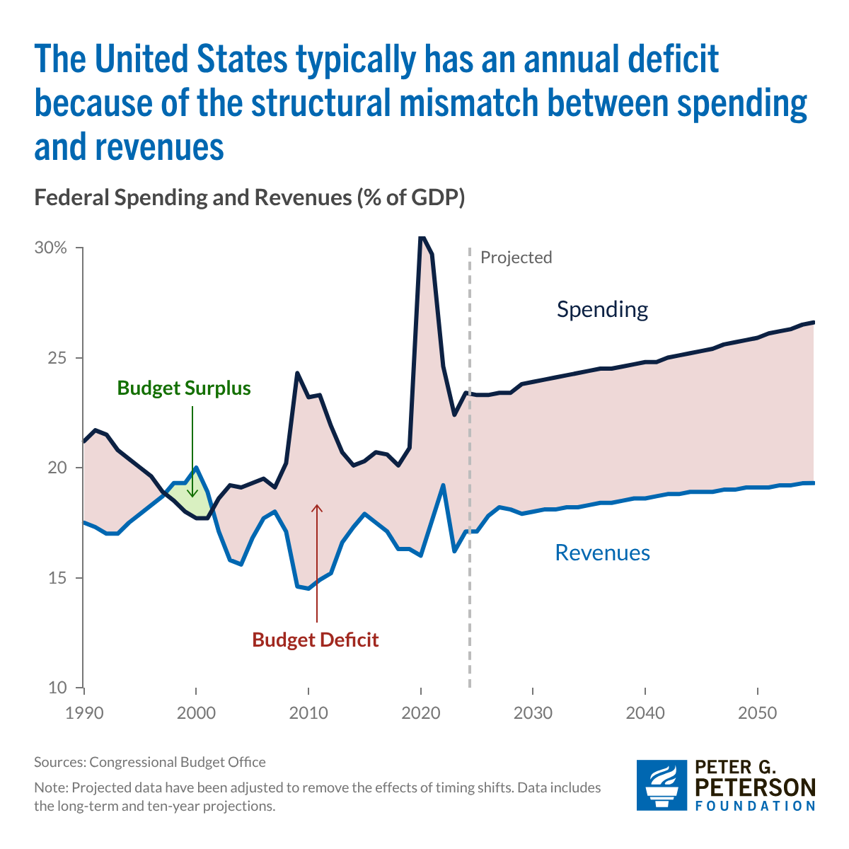 Federal Spending and Revenues (% of GDP)