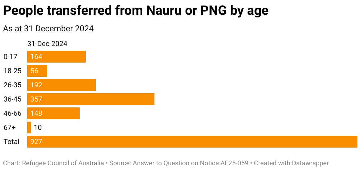 People transferred from Nauru or PNG by age