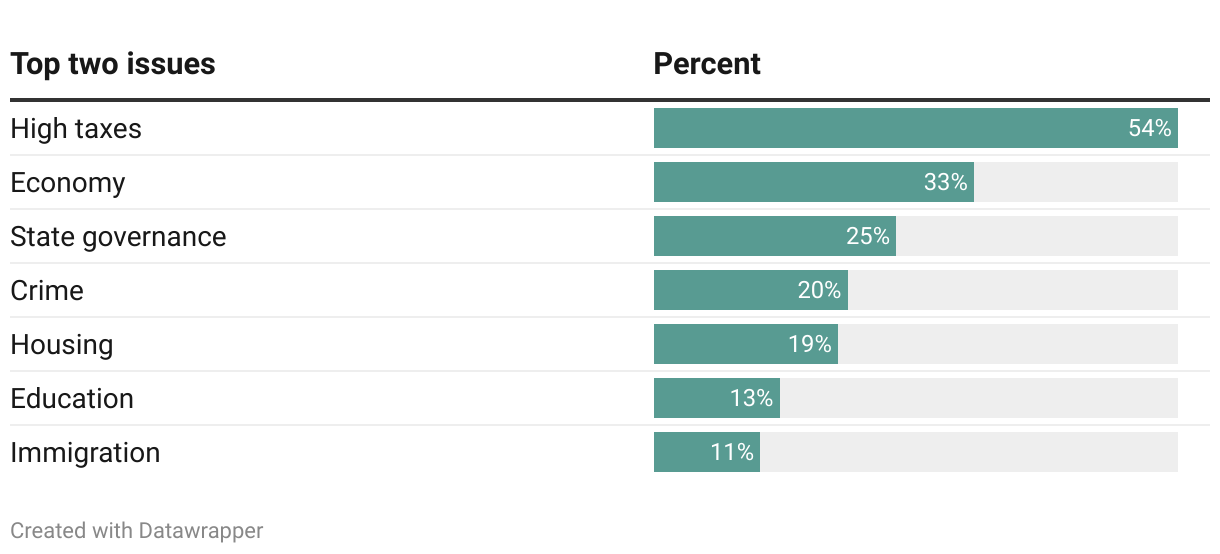 Top two issues facing the state according to 550 Illinois voters polled between April 10-13.