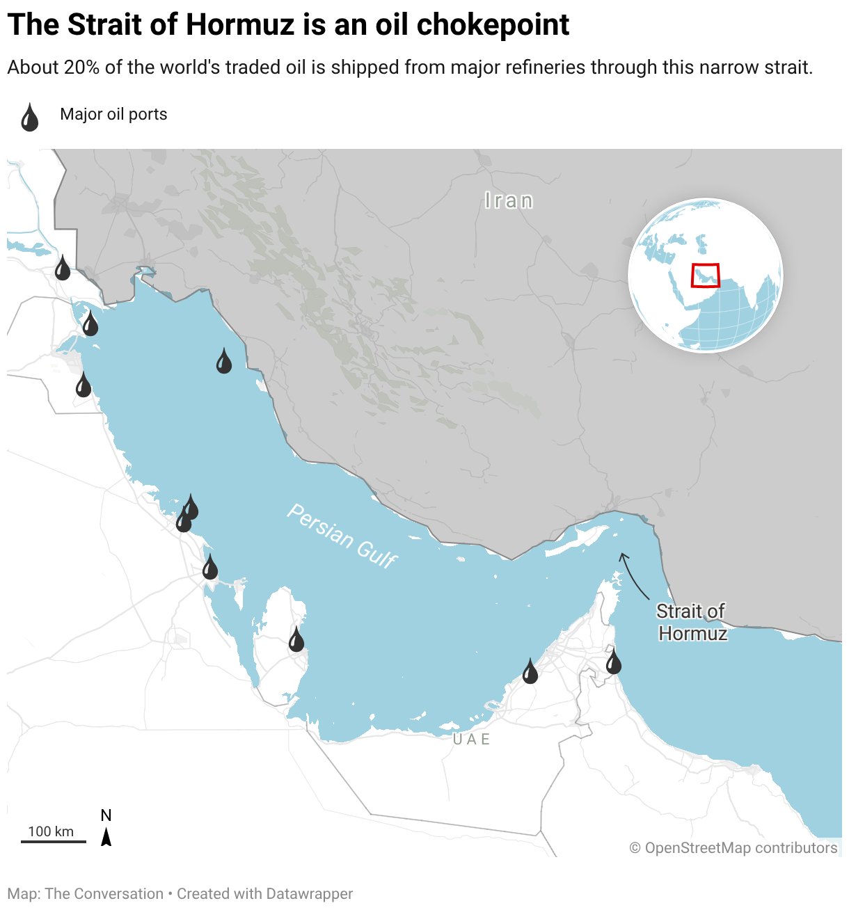 About 20% of the world's traded oil is shipped from major refineries through this narrow strait.
