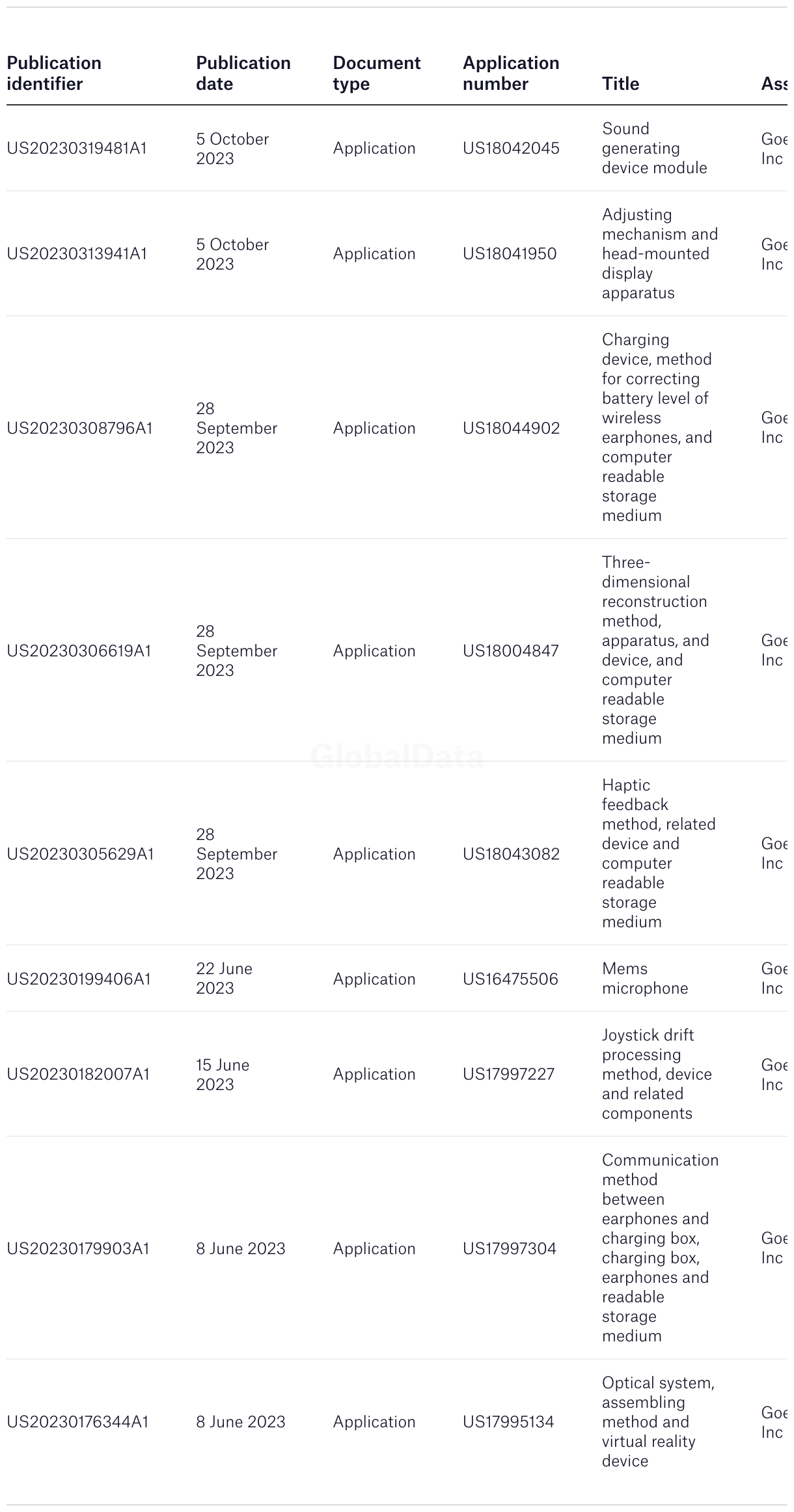 GoerTek: recent applications