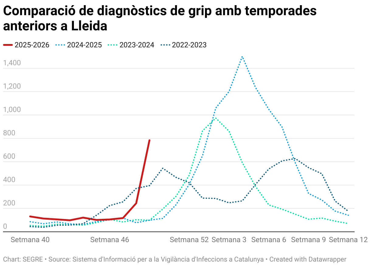Comparació de diagnòstics de grip amb temporades anteriors a Lleida