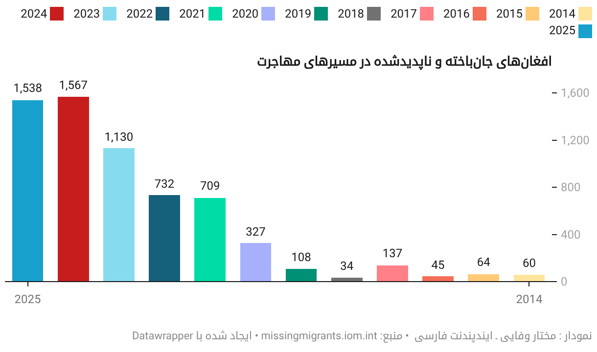 نمودار : مختار وفایی ـ ایندپندنت فارسی منبع: missingmigrants.iom.intتعبیه کردن دانلود تصويرایجاد شده با Datawrapper