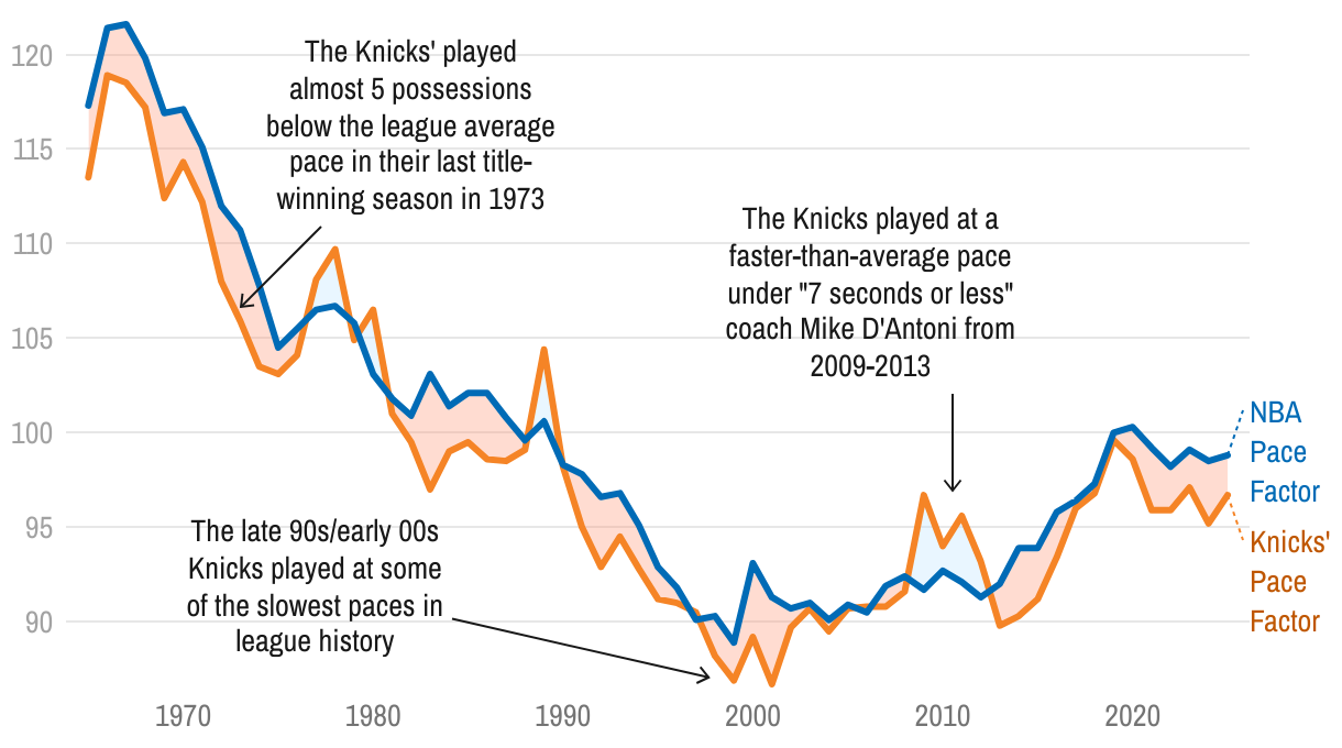 NBA and Knicks' Pace Factors since 1965