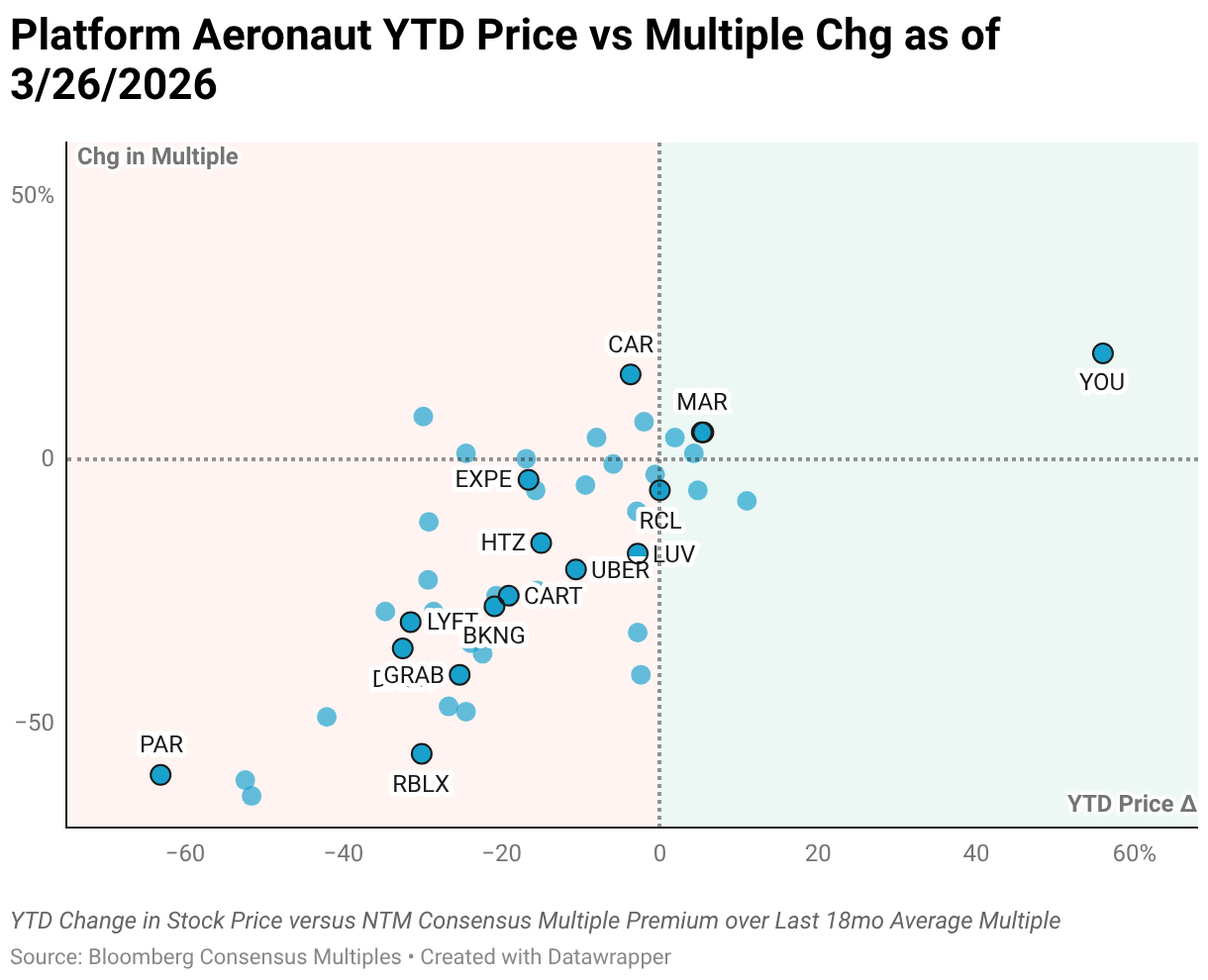 Platform Aeronaut YTD Price vs Multiple Chg as of 3/26/2026