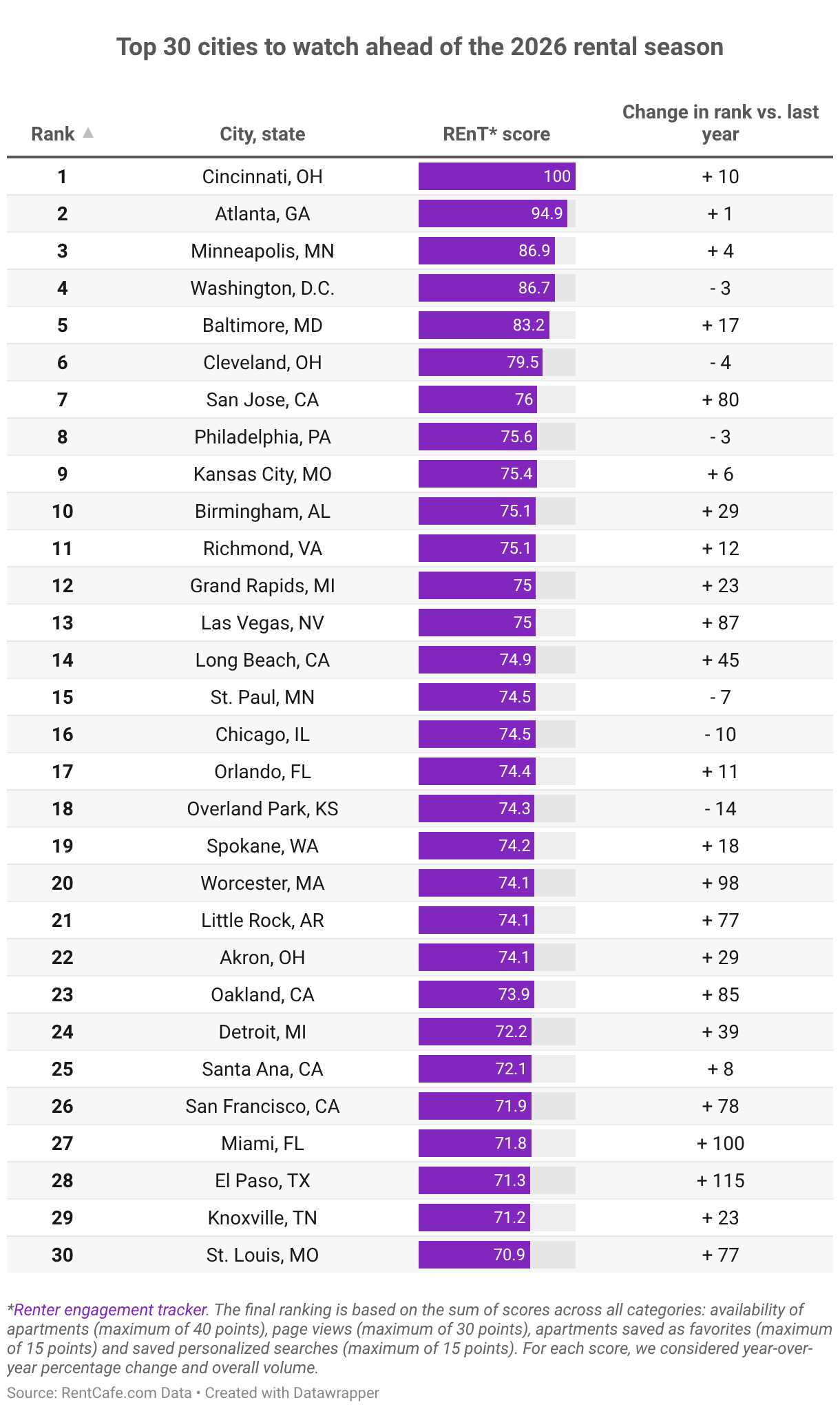 Top 30 cities to watch ahead of the 2026 rental season