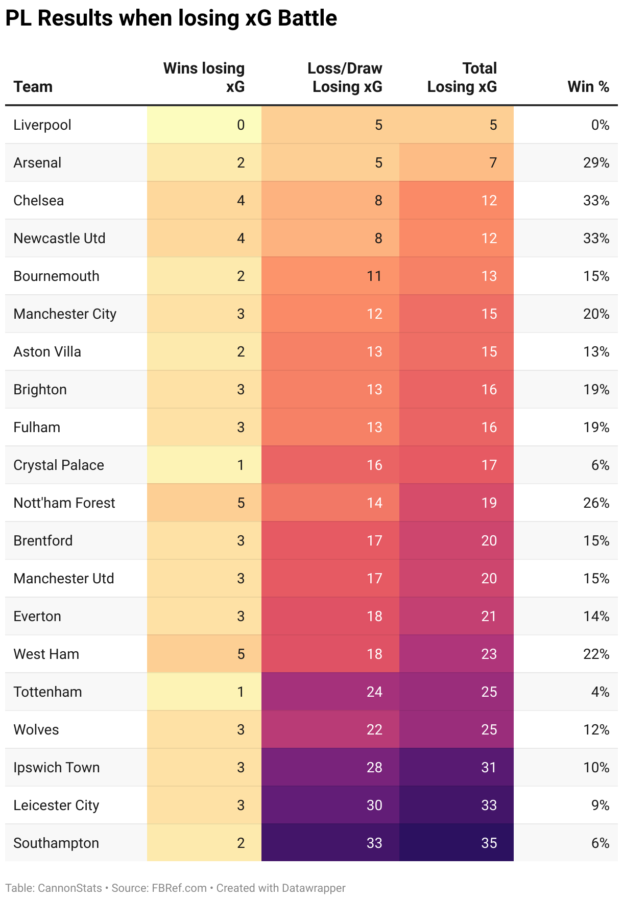 PL Results when losing xG Battle