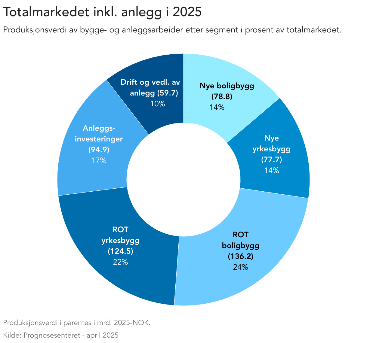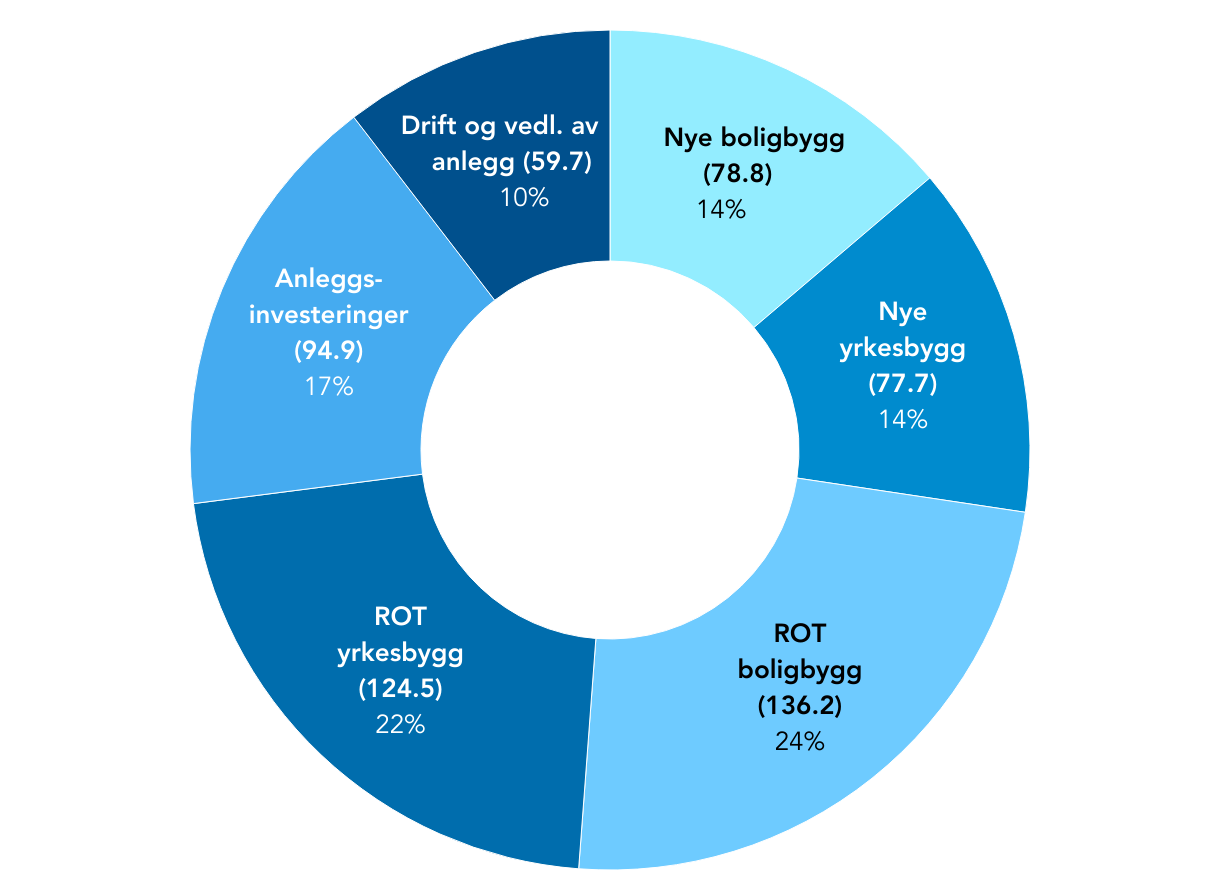 Produksjonsverdi av bygge- og anleggsarbeider etter segment i prosent av totalmarkedet.