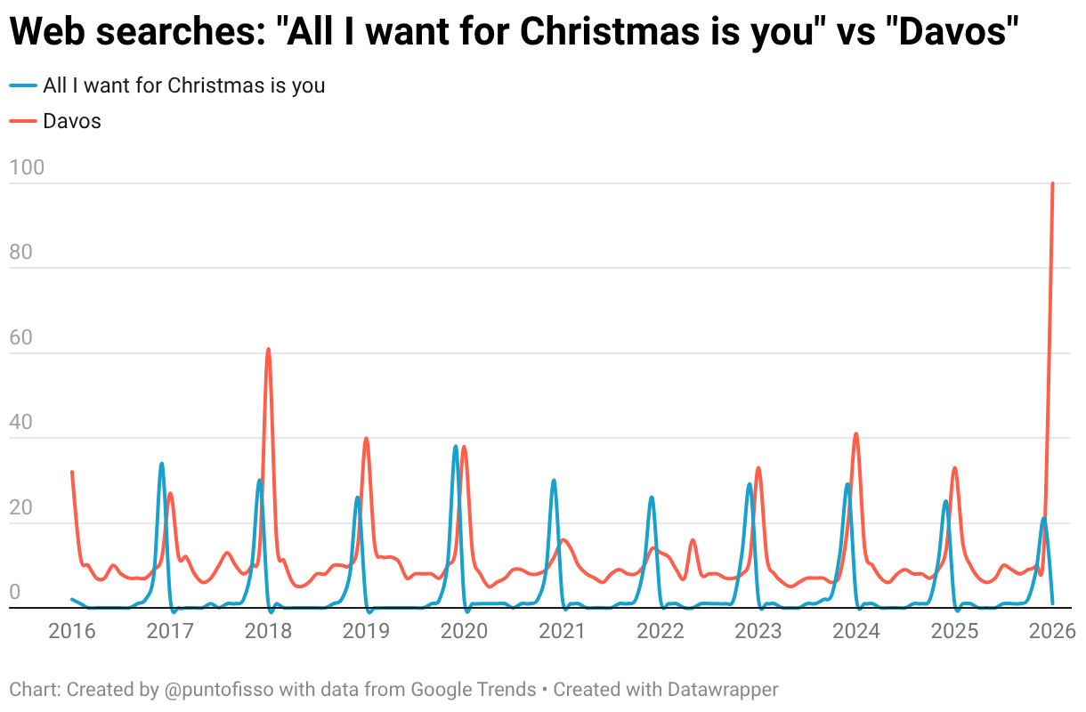 Web searches: "All I want for Christmas is you" vs "Davos"