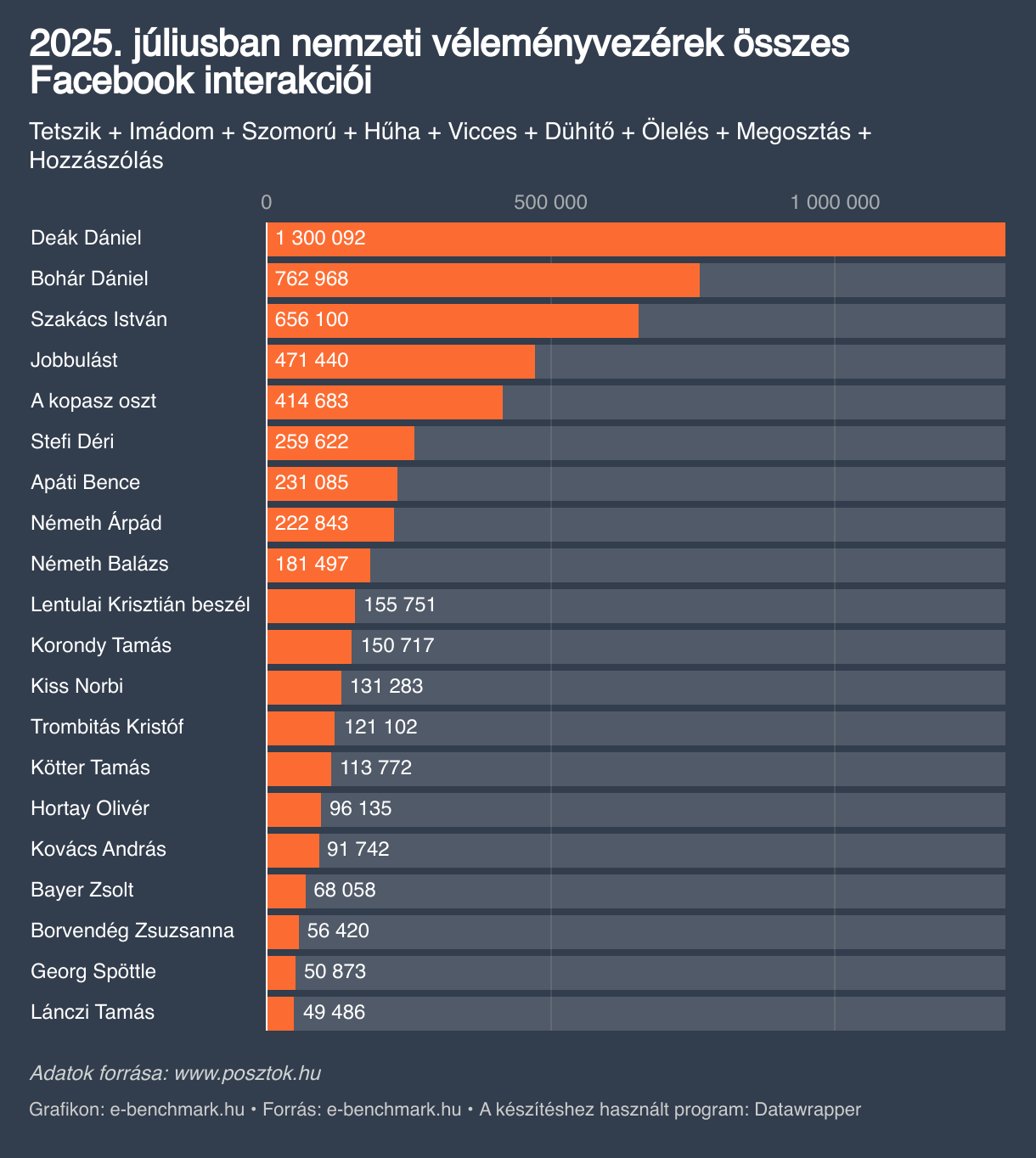 2025. júliusban nemzeti véleményvezérek összes Facebook interakciói