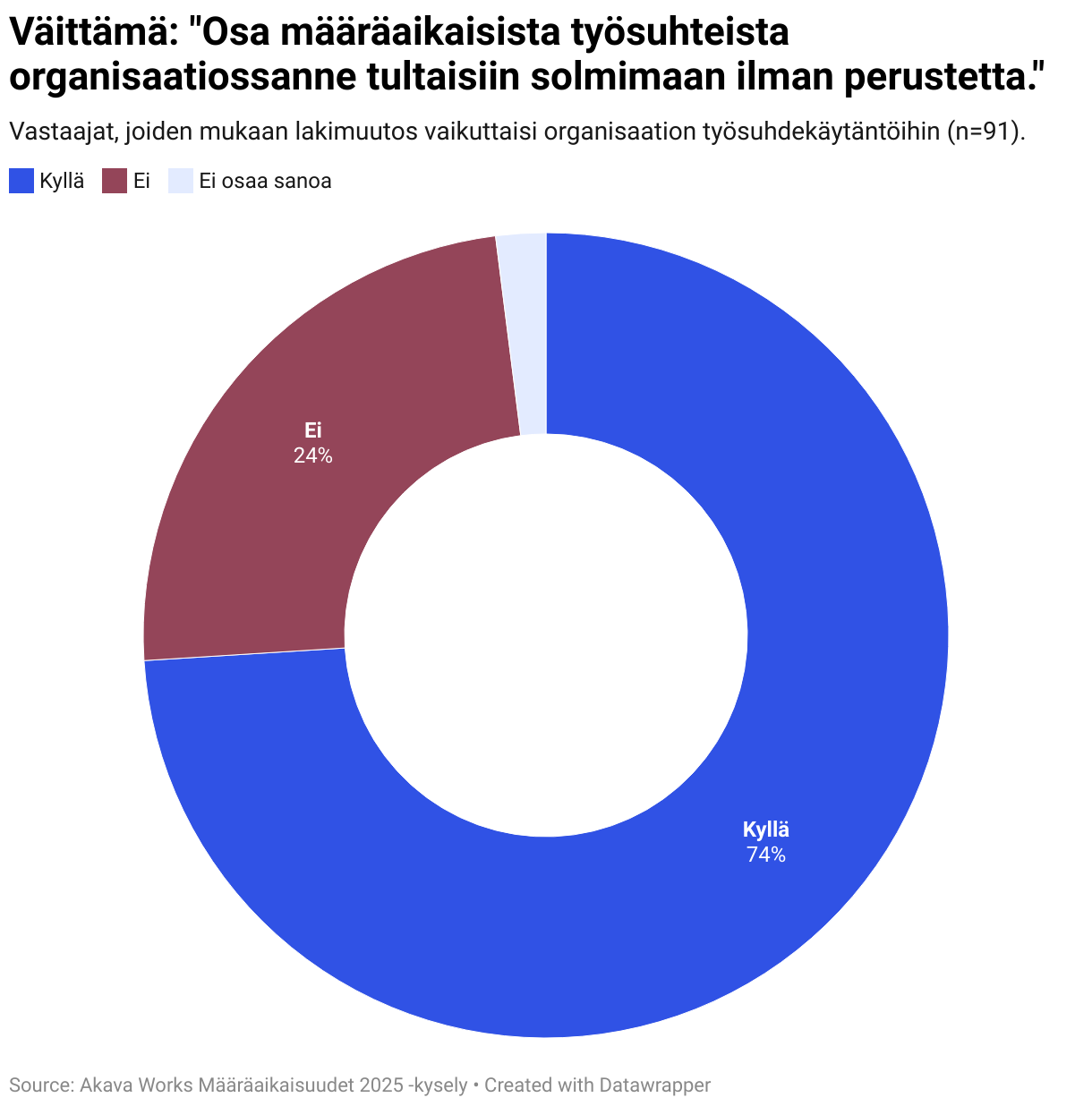 Vastaajat, joiden mukaan lakimuutos vaikuttaisi organisaation työsuhdekäytäntöihin (n=91).