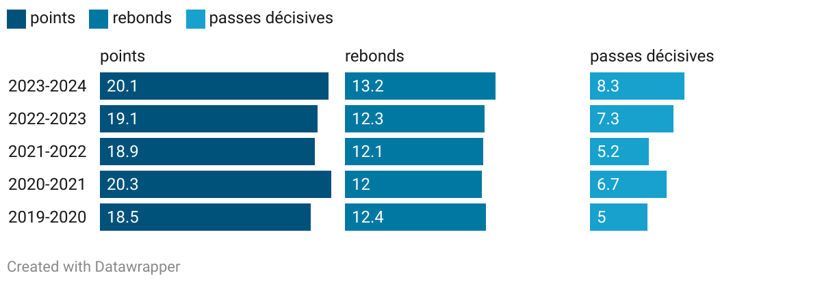 Moyennes de Domantas Sabonis depuis cinq ans.