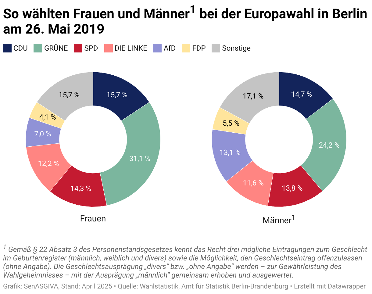 So wählten Frauen und Männer1 bei der Europawahl in Berlin am 26. Mai 2019