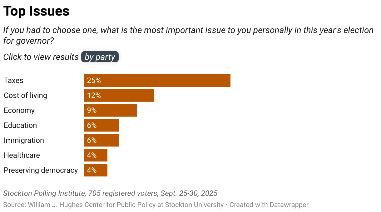 If you had to choose one, what is the most important issue to you personally in this year's election for governor? Click to view results by party