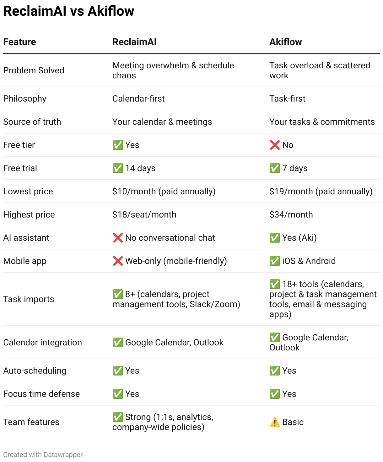 ReclaimAI vs Akiflow