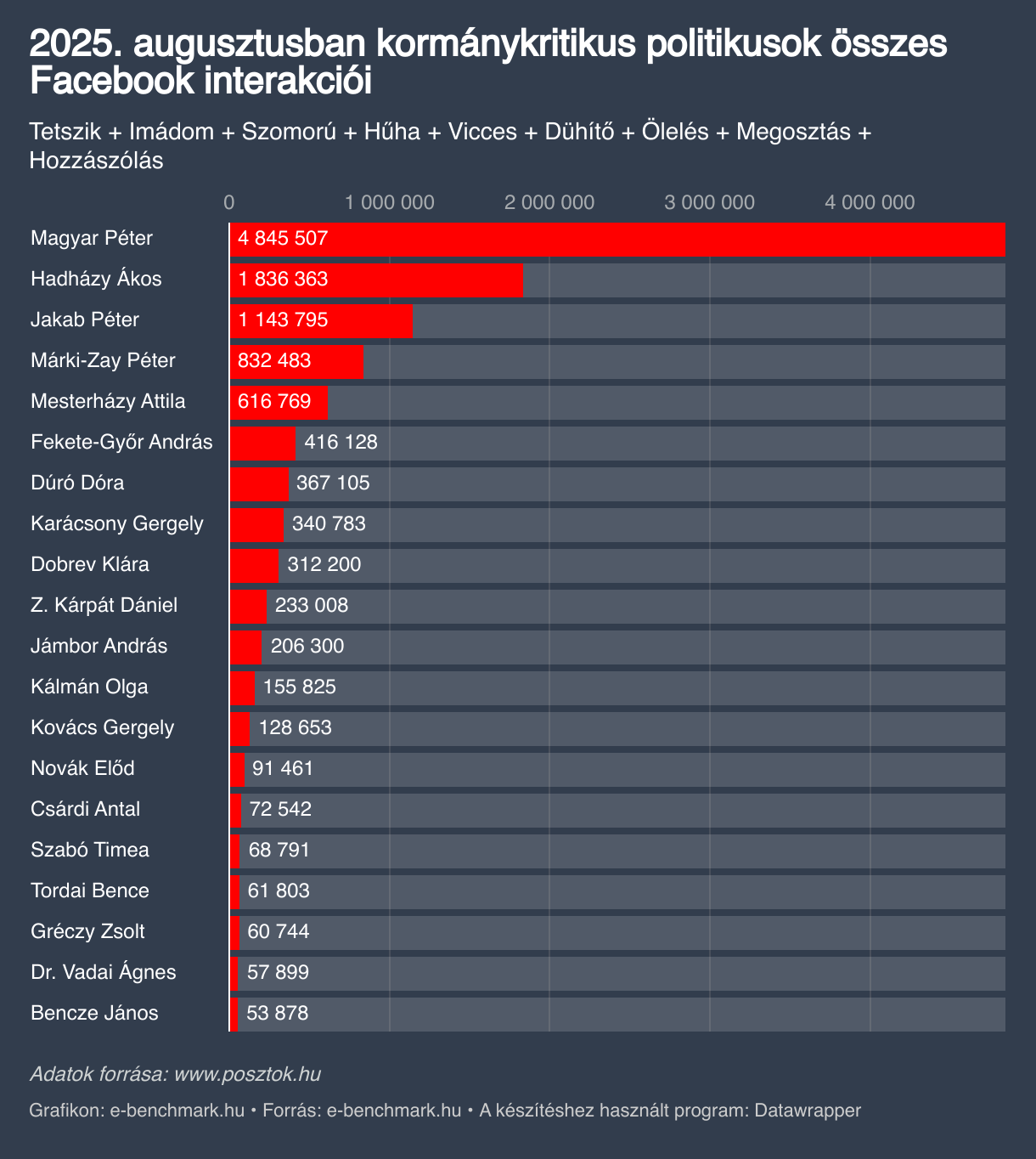 2025. augusztusban kormánykritikus politikusok összes Facebook interakciói