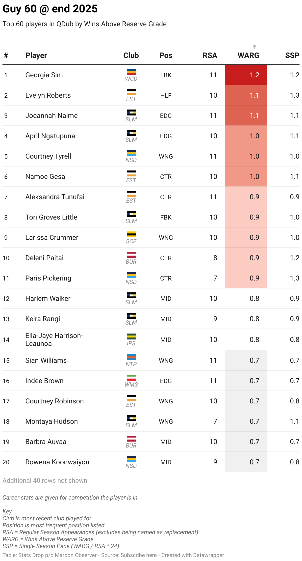Top 60 players in QDub by Wins Above Reserve Grade