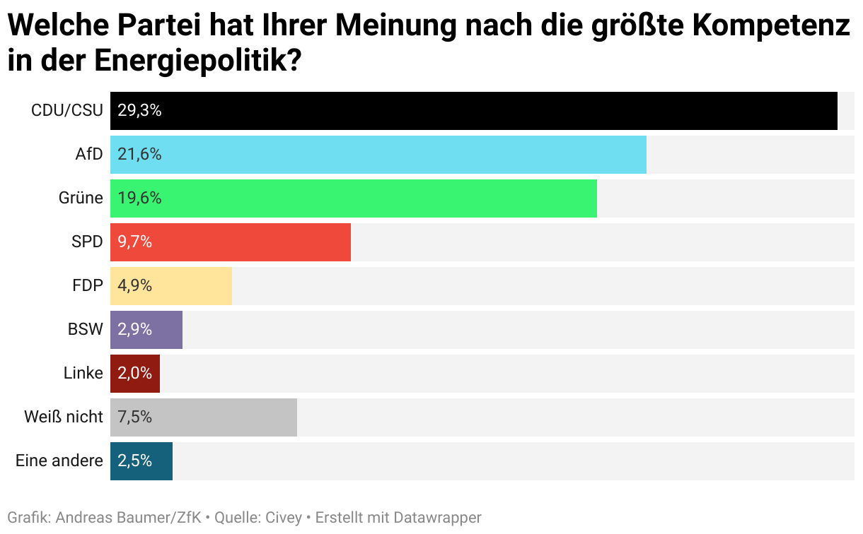 Welche Partei hat Ihrer Meinung nach die größte Kompetenz in der Energiepolitik?