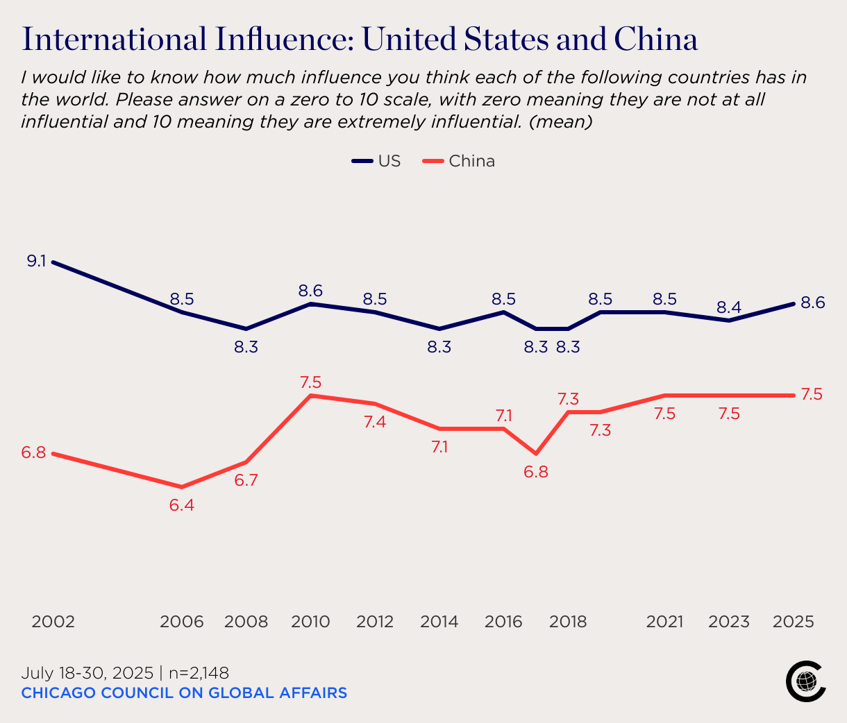 I would like to know how much influence you think each of the following countries has in the world. Please answer on a zero to 10 scale, with zero meaning they are not at all influential and 10 meaning they are extremely influential. (mean)